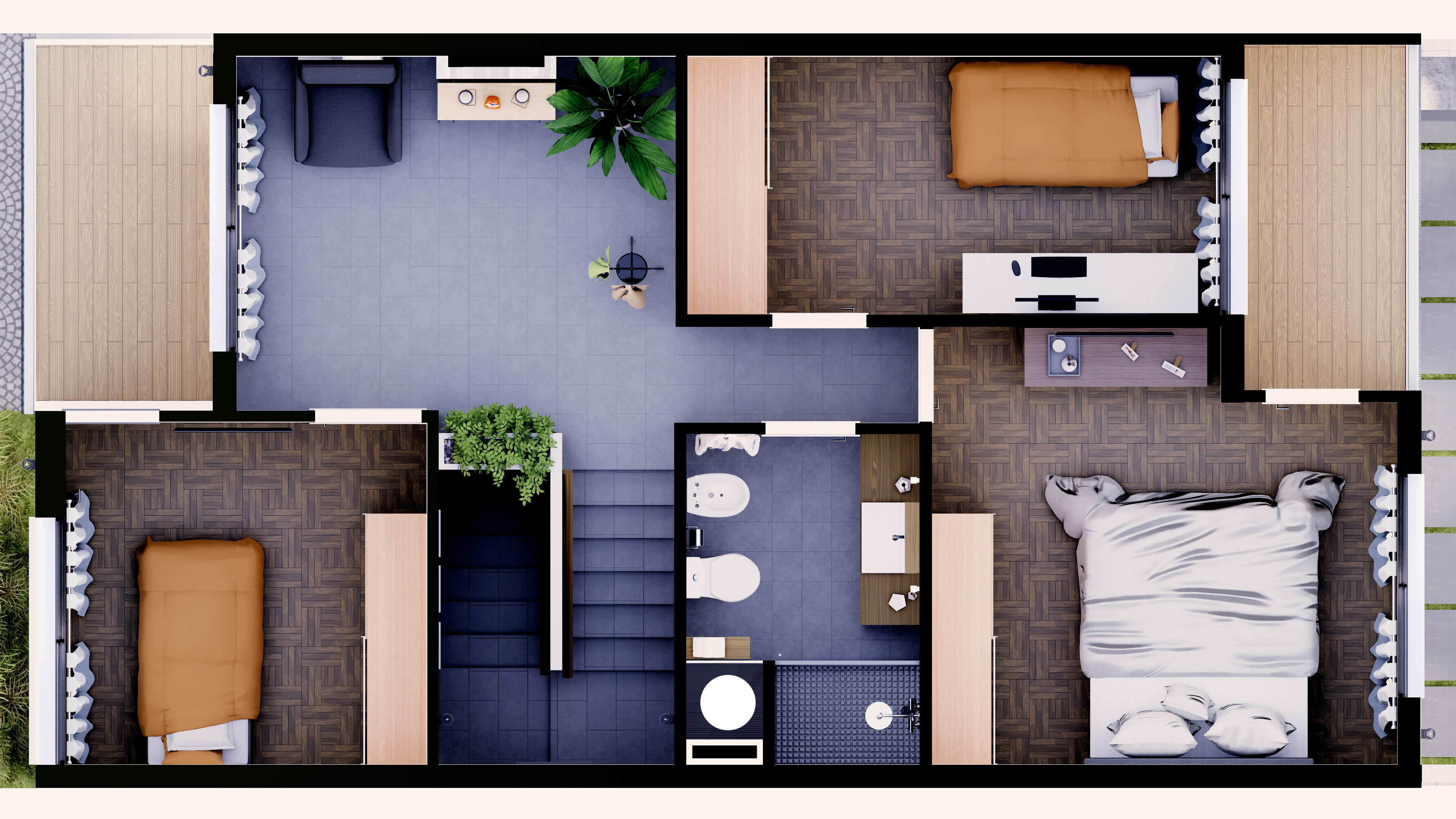 La vivienda se desarrolla en 110 m2 con dos niveles con cocina, living-estar integrado en Planta Baja y 3 dormitorios con terraza en Planta Alta.